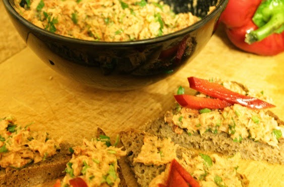 Pomysł zaczerpnęłam z tej strony: http://redandpale.blox.pl/2011/06/Pasta-z-tunczyka-i-suszonych-pomidorow.html. Na śniadanie w pracy czy też w domu sprawdza się idealnie! Można też spróbować użyć tej pasty do makaronu – odrobina parmezanu i obiad gotowy. Aby przygotować pastę potrzebowałam: puszkę tuńczyka w sosie własnym, 8 szt. suszonych pomidorów, zielonej części pietruszki, kolorowy mielony pieprz, ostrą paprykę.