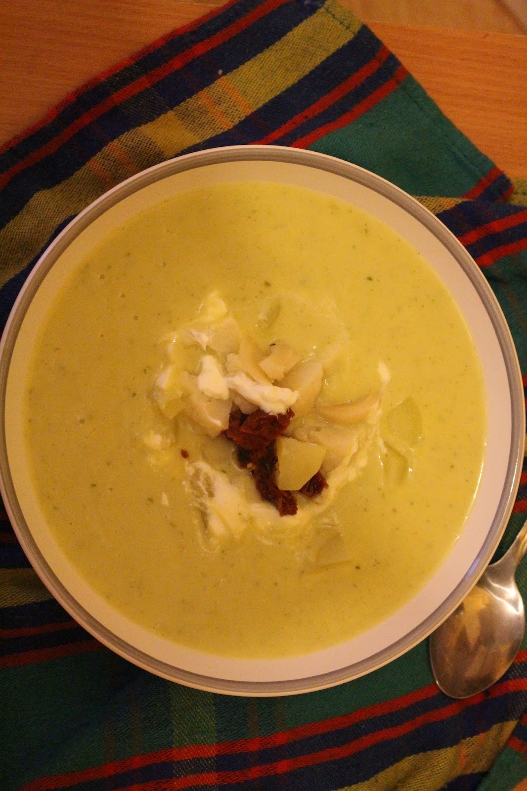 Pozostałe warzywa pokroiłam w drobną kostkę i dodałam do zupy. Zakończyłam jogurtem i kilkoma suszonymi pomidorami.