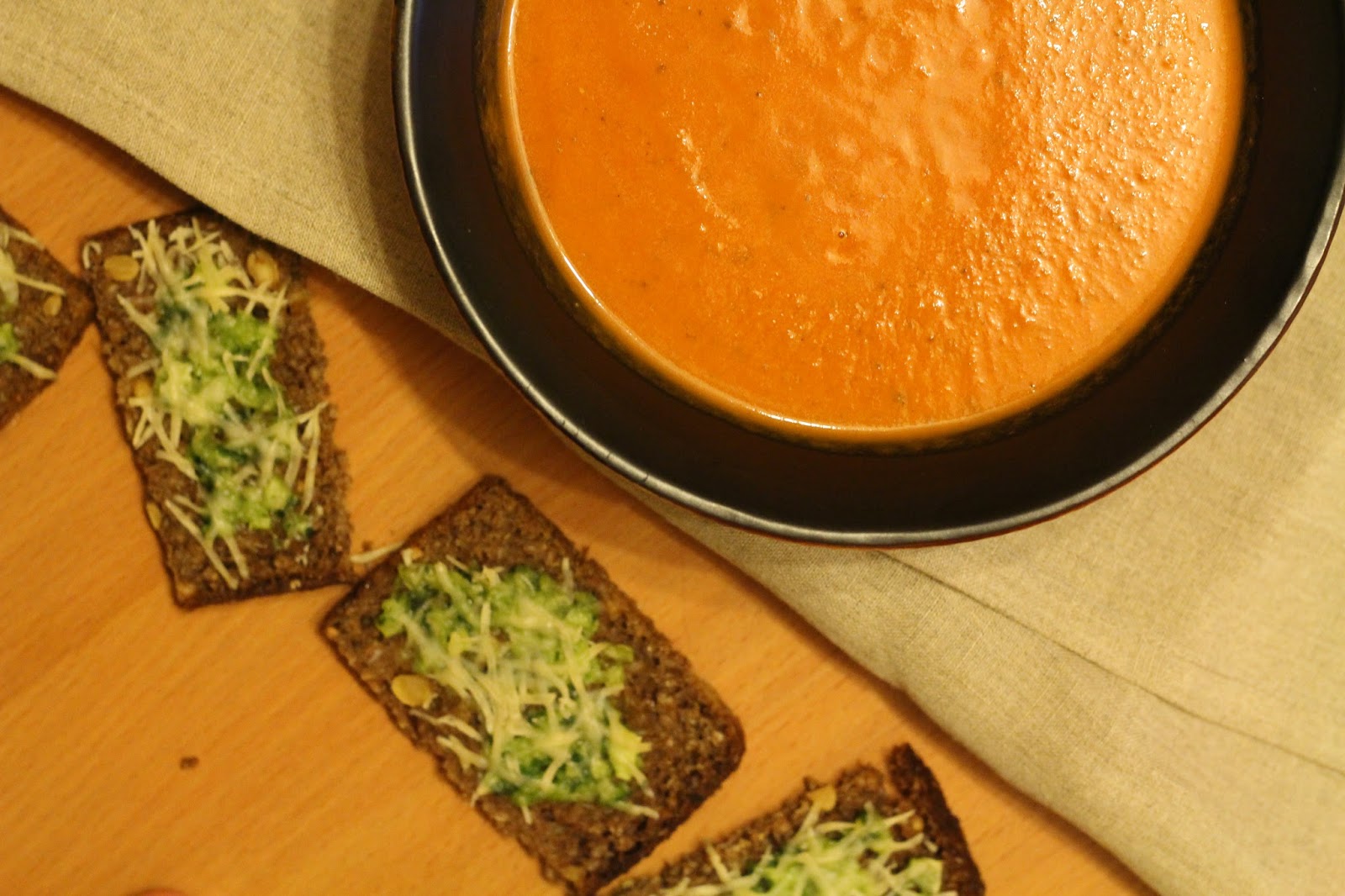 Przygotowanie: Drobno posiekane ząbki czosnku (3 szt.) przesmażyłam na oliwie z oliwek. Dalej dodałam puszkę pomidorów, łyżkę mascarpone i gotowałam do połączenia się składników. Następnie dorzuciłam gałązki bazylii i jeszcze przez chwilę gotowałam na małym ogniu. Wszystkie składniki zmiksowałam w blenderze. Na końcu doprawiłam szczyptą soli, czarnym pieprzem oraz łyżką naturalnego miodu. Do zupy przygotowałam grzanki. W moździerzu roztarłam bazylię, 2 ząbki czosnku oraz starty ser. Przełożyłam na pieczywo, posypałam serem i zapisałam przez ok. 10 minut. W połączeniu z zupą smakowały idealnie.