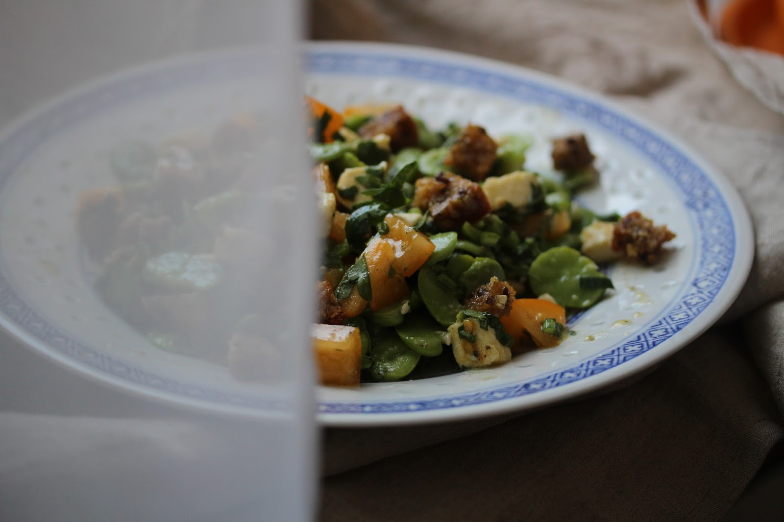 The summer season is fully started. In this period light dishes prove to be the best, without a large commitment. That’s way I moved you to try my conception of salad with broad beans. I just started my experience with this plant, but I feel it will be a long and fruitful journey. This pod plant is abundant in nutritional value, it has a low sodium content, is ample in potassium and soluble fiber, which promotes the reduction of cholesterol standard in the blood, so that it regulates the pressure of the body. So its a small fat furniture as a large amount of soluble fiber helps controlling weight. Additionally, it contains folic acid and B vitamins – substances necessary for proper nervous system.