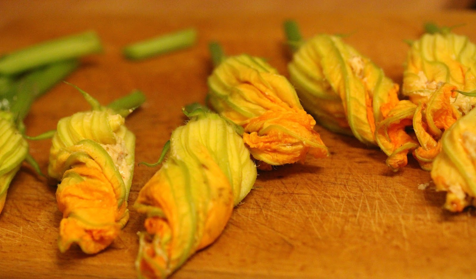 U rodziców zawsze najlepiej. Tym bardziej, że można korzystać z darów ich ogrodu. Dla takich amatorów gotowania jak ja, jest to idealne miejsce. Wśród tych dóbr odnalazłam kwiaty cukinii. Nie sądziłam, że można je faszerować.