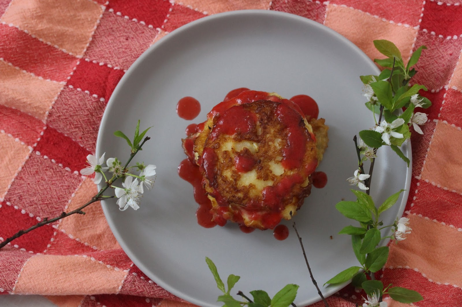 Placki przekładamy na talerz, polewamy sosem i można jeść. Można tez podawać ze świeżymi owocami lub cukrem pudrem.